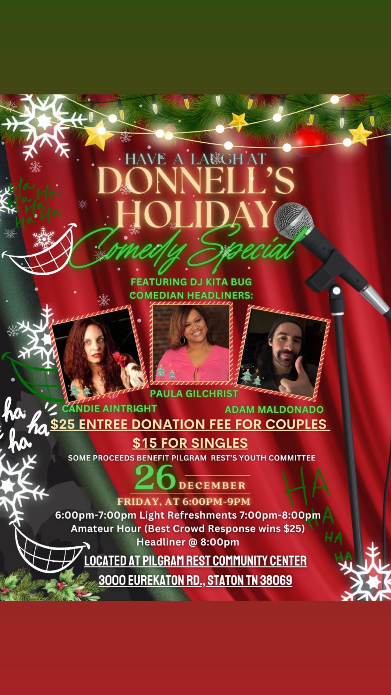 Stanton, TN – Donnie’s Holiday Comedy Show by pgilchrist | Nov 27, 2025 | Comedy Shows, Paula Gilchrist News | 0 comments Submit a Comment Cancel replyYour email address will not be published. Required fields are marked *Comment * Name * Email * Website